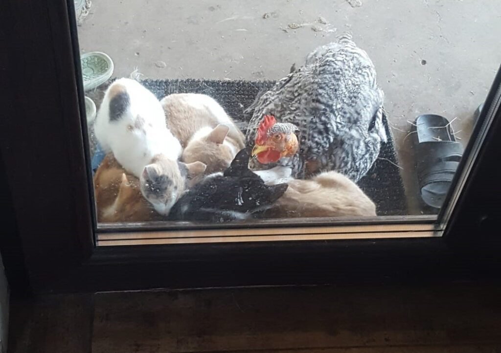 Qui aurait cru que le rôle de leader parmi les félins serait plus facile à conquérir ? Eh bien, Brutus a réussi ! Parmi les chats, il s’est transformé d’un coq agressif en un coq aux aspirations paresseuses. Il a probablement mis la main sur un livre de développement personnel : “Comment devenir un Coq Zen dans le Monde des Félins.”